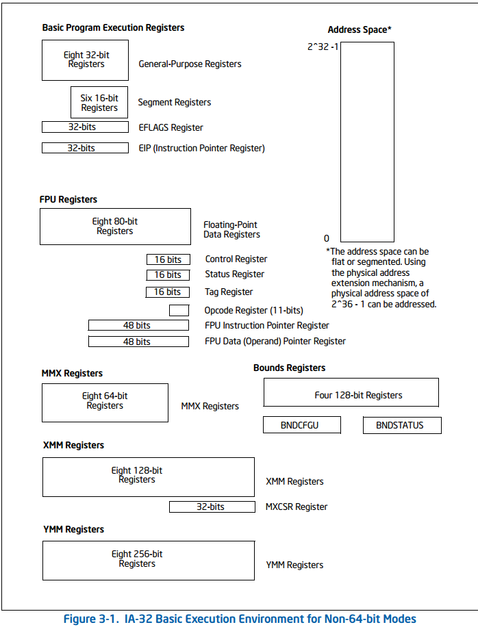 flat,segmented, orrealaddress mode. - Flat memory model: