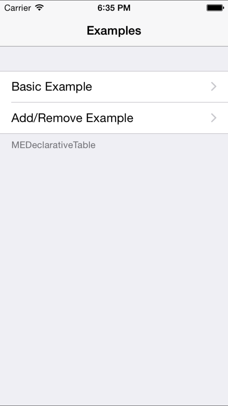 [section addRow:row];MEDeclarativeTable is available through CocoaPods. To install it, simply add the following line to your Podfile: