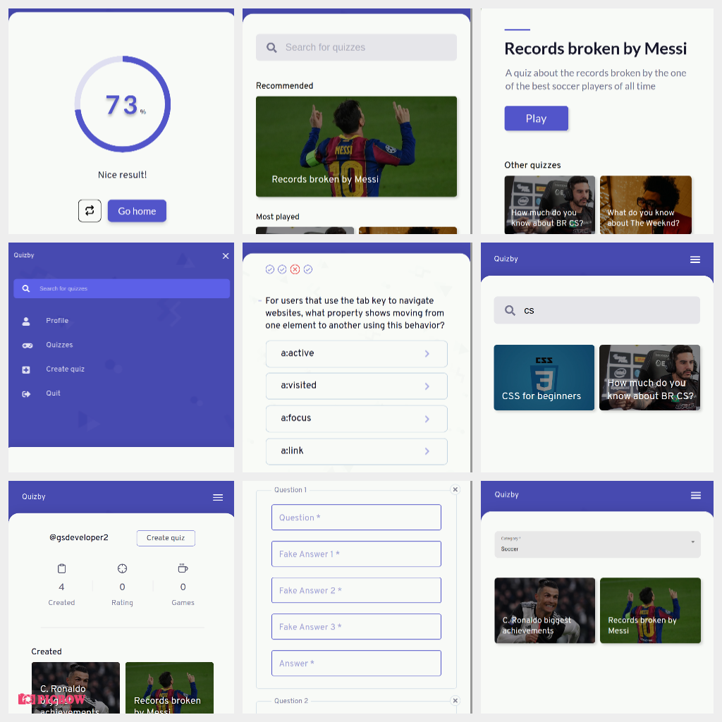 Quizby was created with the intention of its users to create quizzes and share with their friends, currently In Quizby users can: