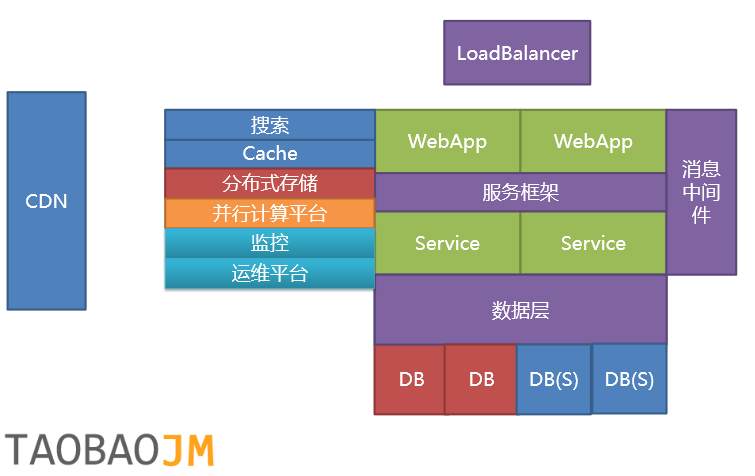 我们看一下淘宝前几年的架构的例子。
