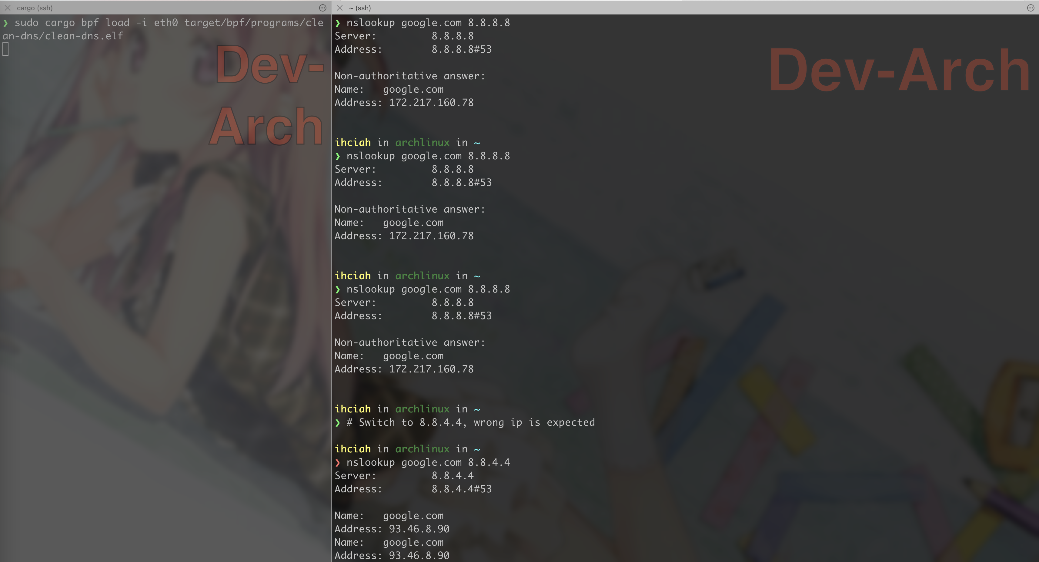 sudo cargo bpf load -i eth0 target/bpf/programs/clean-dns/clean-dns.elf
