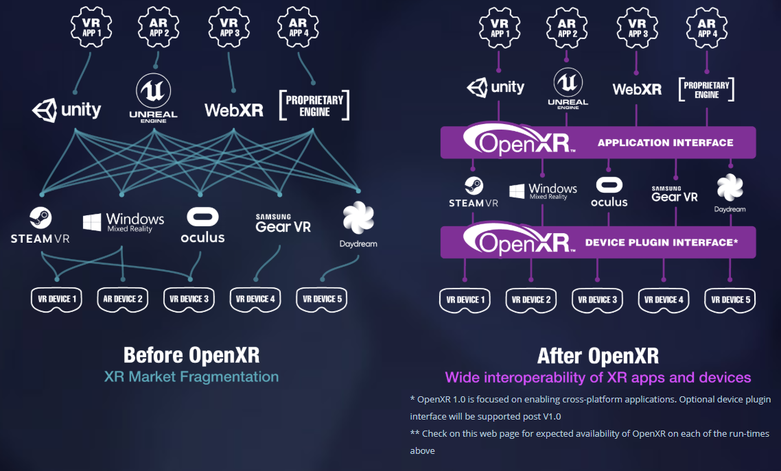 현재의 VR/AR/MR의 fragmentation을 해결하기 위한 표준 API